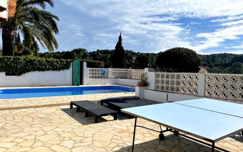 Location: JaveaLocation: Jesus PobreLocation: Montgo, JaveaType: VillaBedrooms: 4Bathrooms: 2Build: 285m2Plot: 2377m2PoolKitchen: YesDining Room: YesLiving Room: YesHeating: Gas C/HAir Con: Hot and ColdGarden: Landscaped with Fruit treesParking: CarportViews: Of the countryside and the MontgoOther: Self contained apartmentEnergy Cert.: Pending